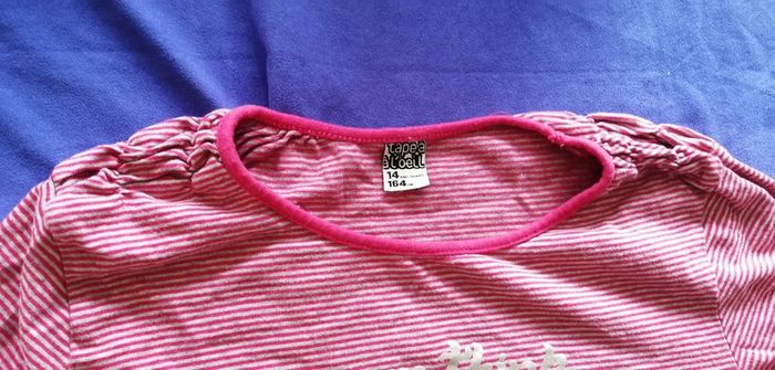 Pour accéder aux vêtements taille 14ans appuyez ici---->#kat59147fille14ans Robe manches longues de marque tape a l oeil effet petit volant en bas. Elastiques aux epaules. Rayures rouge ou fushia et gris.
