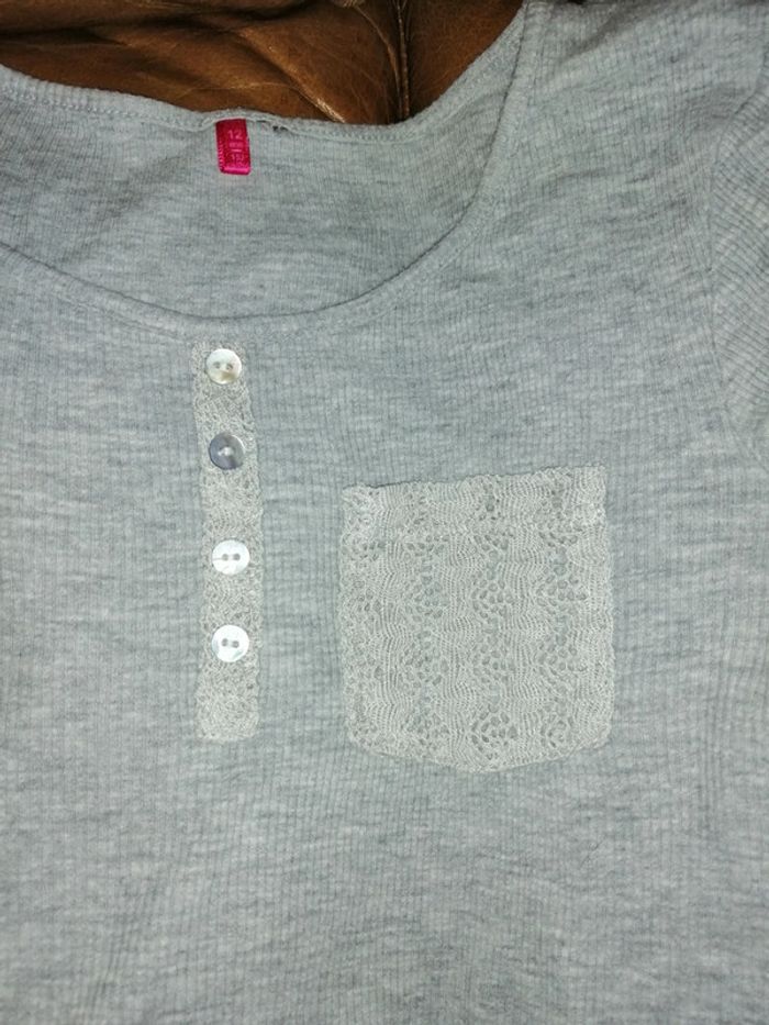 Pour accéder aux vêtements taille 12 ans appuyez sur----> #kat59147fille12ans Petit t shirt manches longues gris petite poxhe brodée déco et boutons nacrés. Les étiquettes sont coupées
