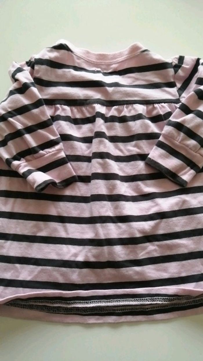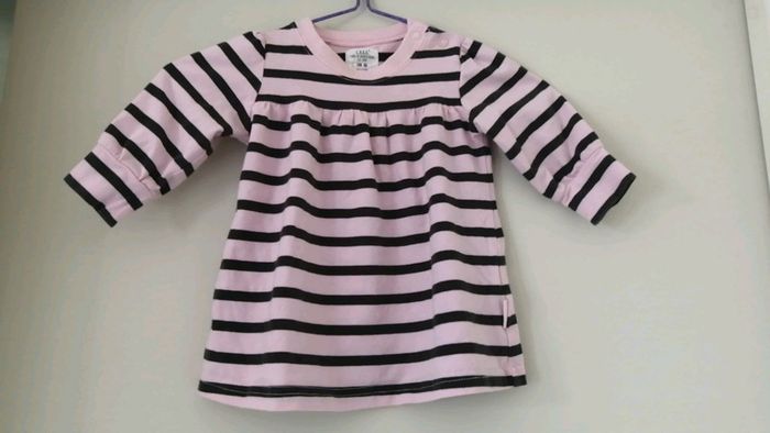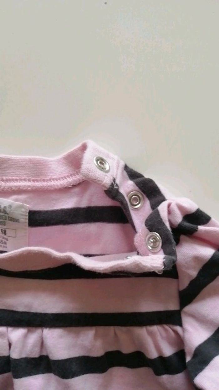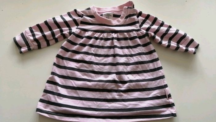 Pour accéder aux vêtements taille 6 mois appuyez sur-->#kat59147fille6mois belle robe fine h&m a rayures rose et noire. Resserrée aux bords de manches et fermeture par pressions au cou