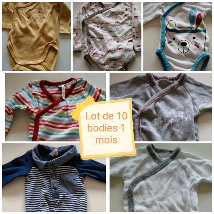 Pour accéder aux vêtements taille 1 mois appuyez sur-->#kat59147bébé1mois propose lot de 9 bodies croisés et 1 non croisé. Toutes marques : Photo 2/3 bodie h&m tbe Photo 4 bodie sans marque 100% coton tbe Photo 5/6 bodie etiquette coupée écrit :je suis un bébé parfait Photo 7/8 bodie etiquette coupée tbe Photo 9/10 bodie absorba tbe Photo 11/12 bodie orchestra tbe Photo 13/14 bodie orchestra avec petite tâche en photo 15. Photo 16 a 20 : 3 bodies croisés blanc et jaune pales a nouettes #h&m #lot #bodies