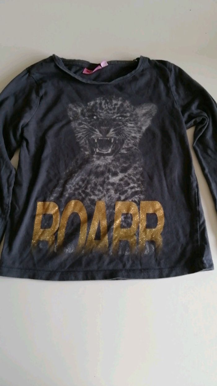 Pour accéder aux vêtements taille 6 ans appuyezsur-->#kat59147fille6ans Propose t shirt manches longues gris foncé avec déco panthere et logo paillette. Pas de tache ni de trou. Bon état. Souvent porté avec le legging chat (en 5 ans) #kat59147chat dans mon dressing.