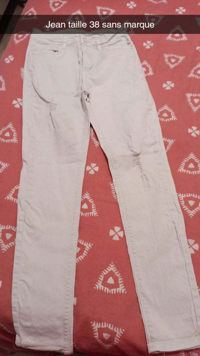 Jean blanc troué taille 38 sans marque - photo numéro 1