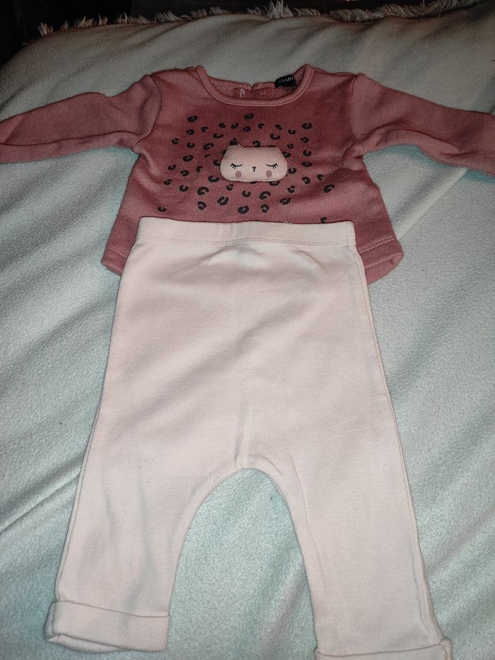 Un ensemble Kiabi, camaïeu de rose, taille 3 mois, pull avec legging assorti. Bon état