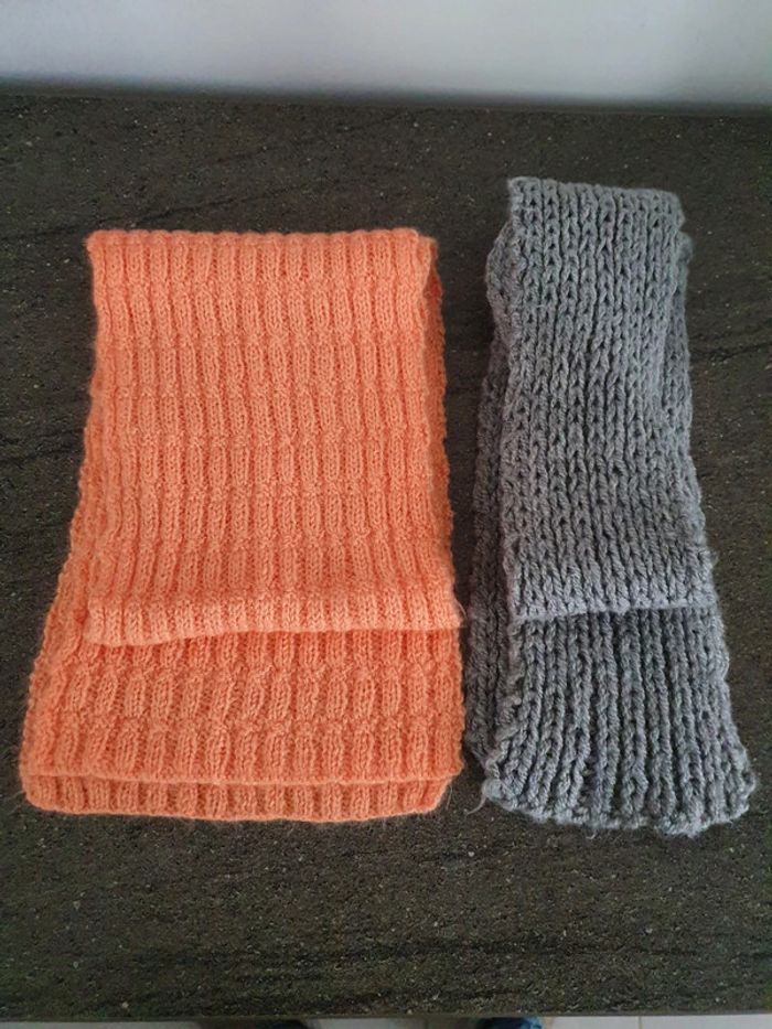 Lot de 2 écharpes enfant. La grise est en bon état et l'écharpe orange est en très bon état.