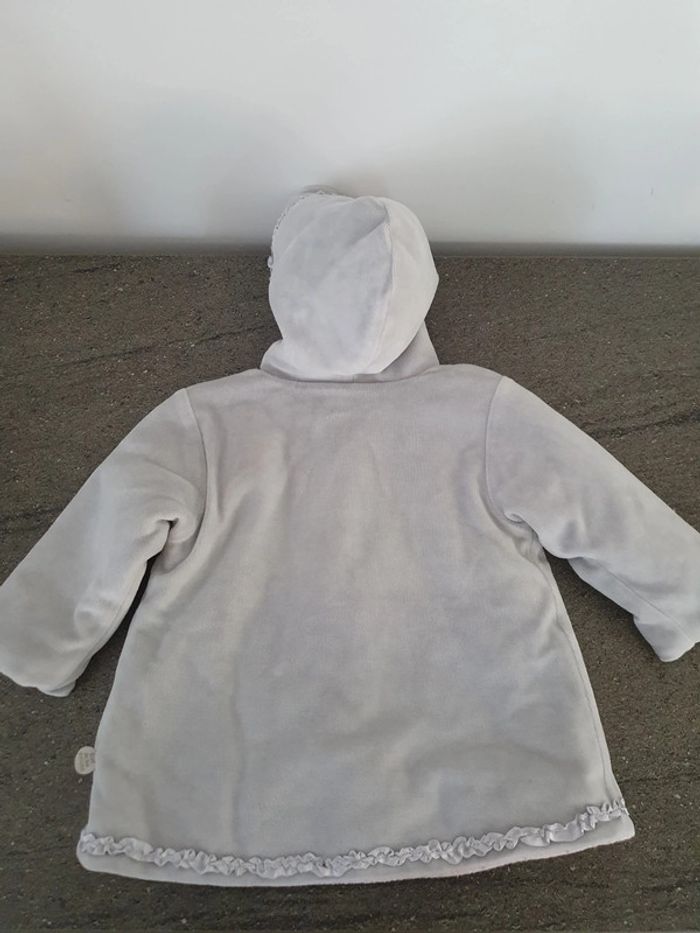 Veste / gilet avec capuche taille 6 mois en très bon état. Fermeture par 2 pressions. #lilie210708filletaille6mois