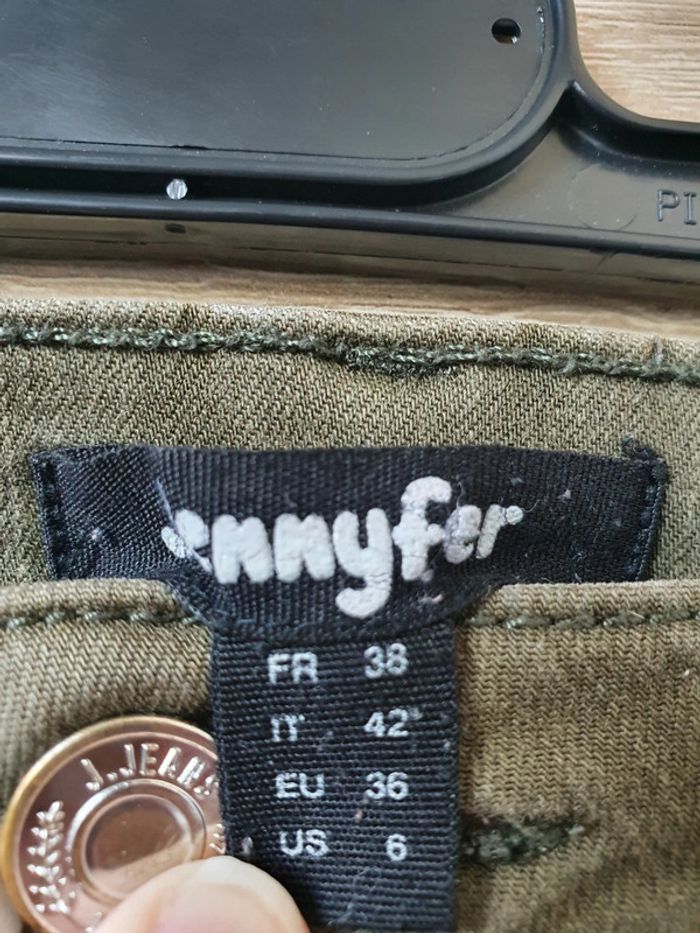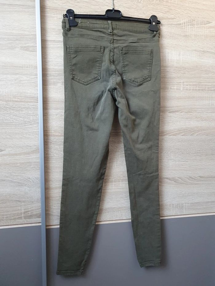 Jean troué kaki taille 38 en bon état. Petites traces d'usures sur les poches arrières mais c'est très léger voir photo 4. #lilie210708femmetaille38