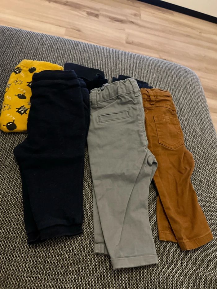 3 jeans taille 18 mois 2 joggings taille 18 mois 1 bermuda taille 18 mois Marques kiabi , terre de marins , mes petits cailloux