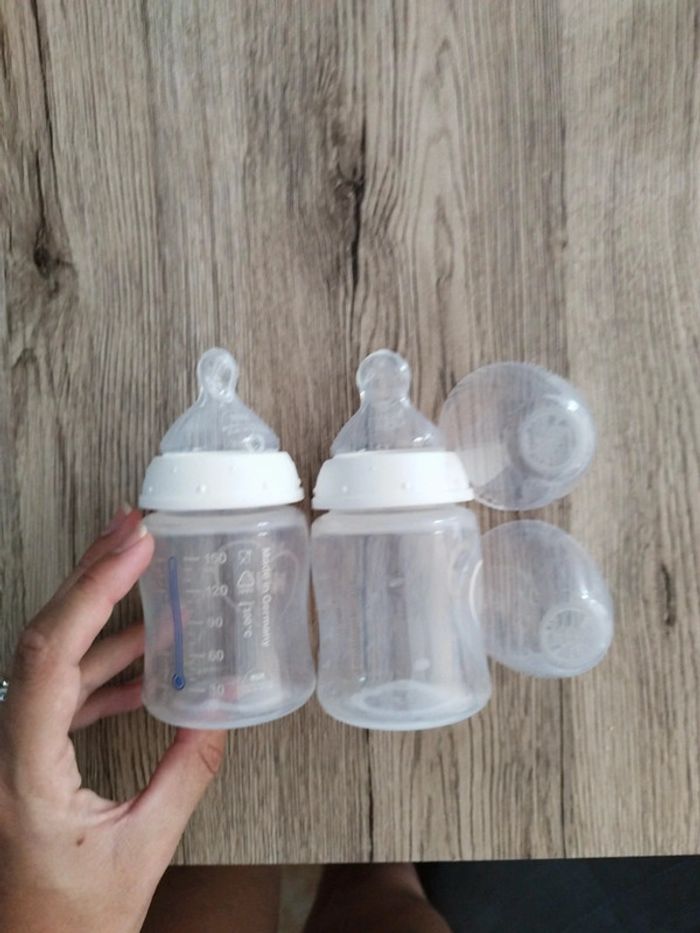 Je vends ces deux biberons 1er age, les tétines sont neuves pour information. Les biberons ont été utilisés une à deux fois