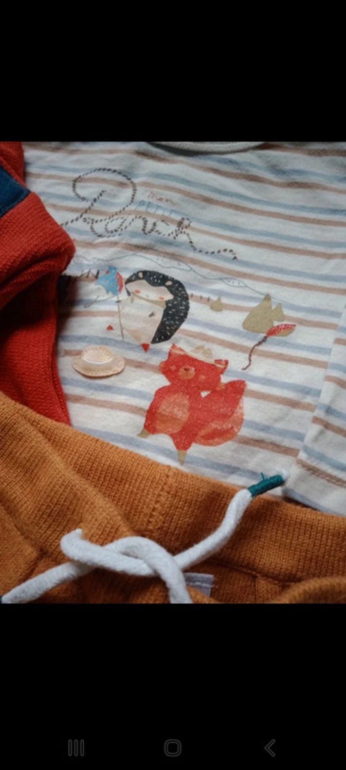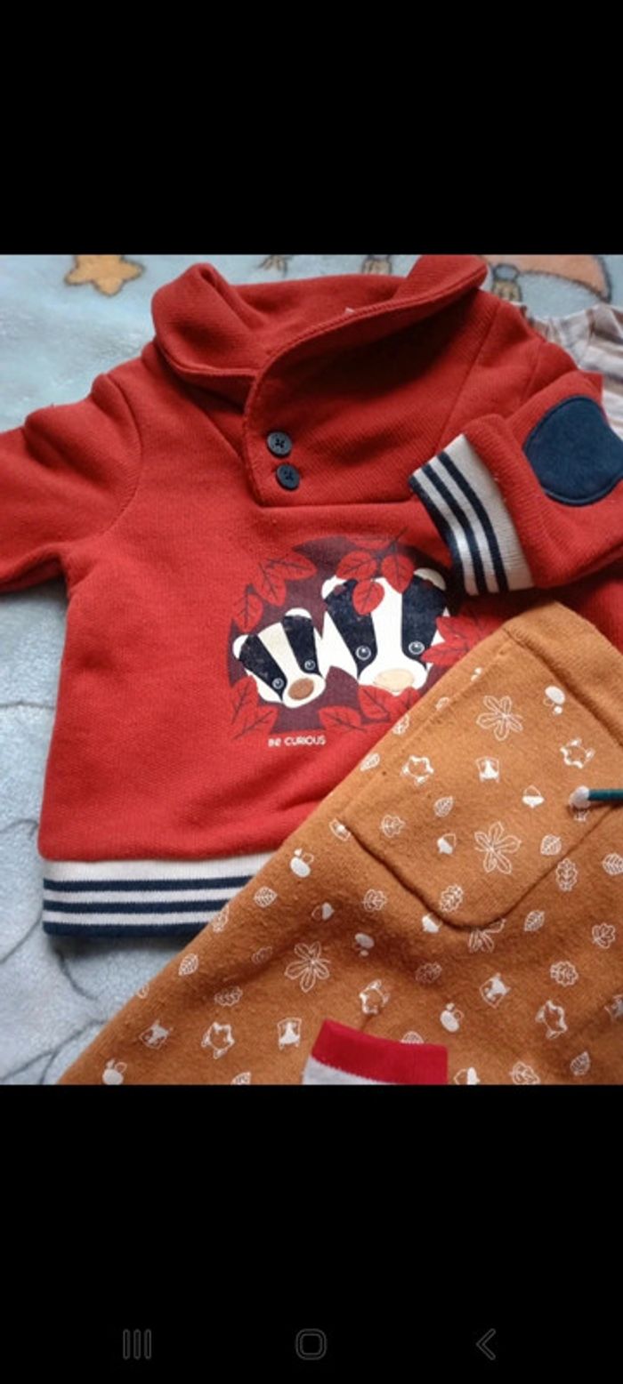 Magnifique ensemble composé de : Tee shirt sergent major ouverture pression long du dos très pratique Pantalon doux et pull Okaïdi porté très très rarement Chaussettes offertes (une autre que celles en photo presque pareil). 6 mois #6moisbabyestlé