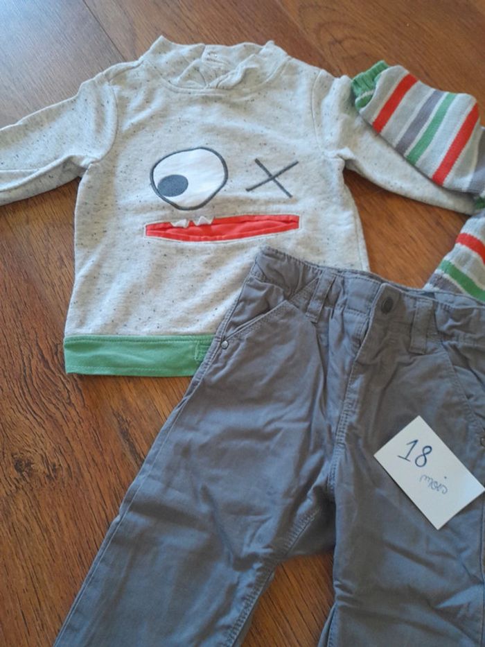 Ensemble assorti en très bon état avec un pantalon gris porté une seule fois comme neuf. #18moisbabyestlé Réduction intéressante en lot