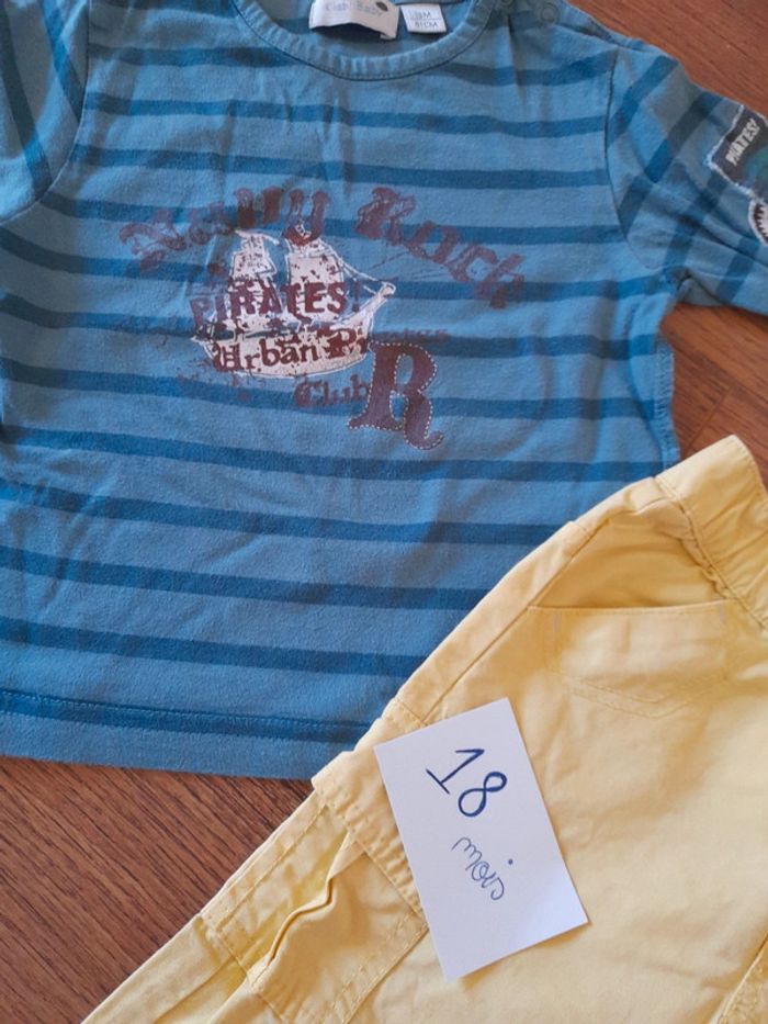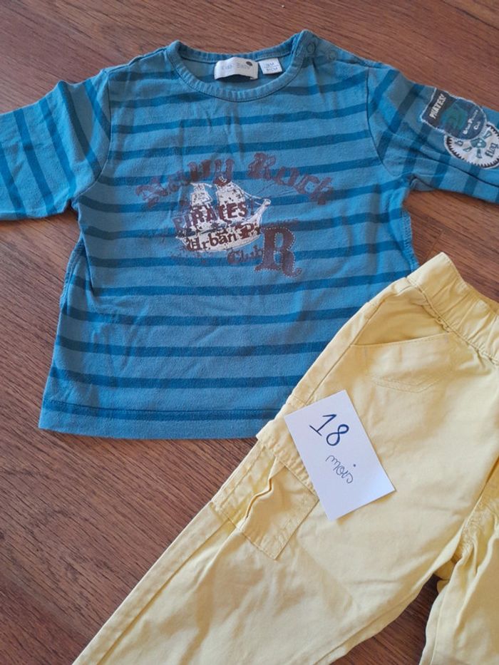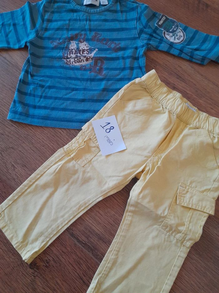 Tee shirt très bon état kiabi, pantalon jaune léger verbaudet neuf #18moisbabyestlé Réduction intéressante en lot