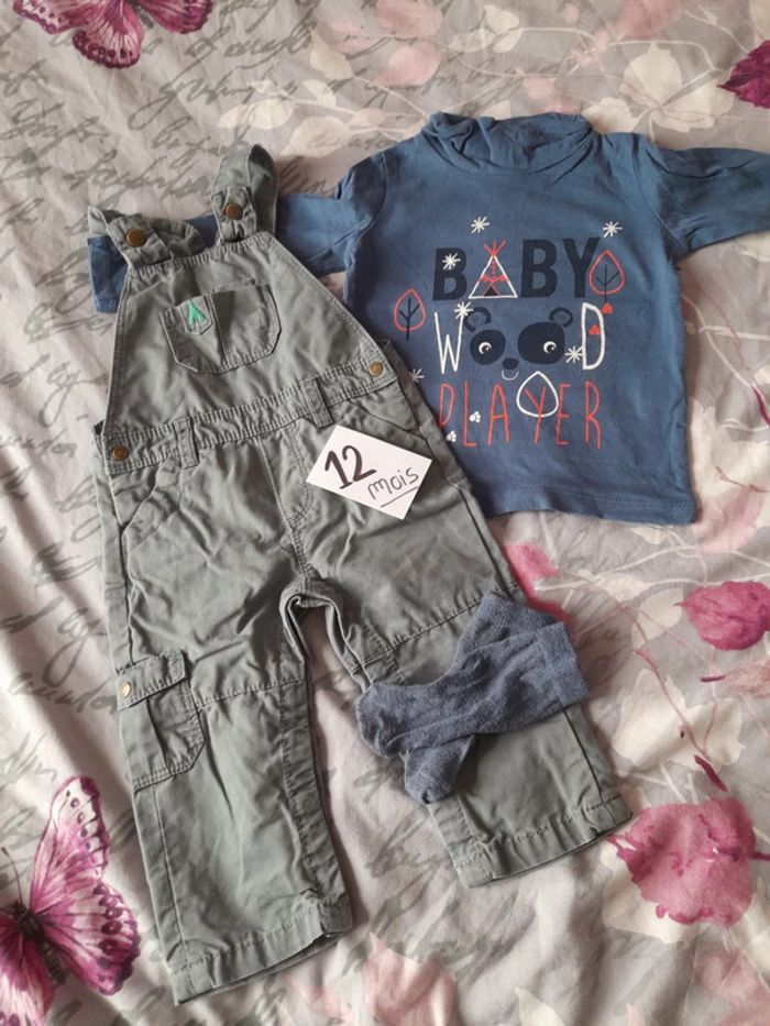 Salopette okaidi Tee shirt col inextenso et chaussettes comme neuf #12moisbabyestlé