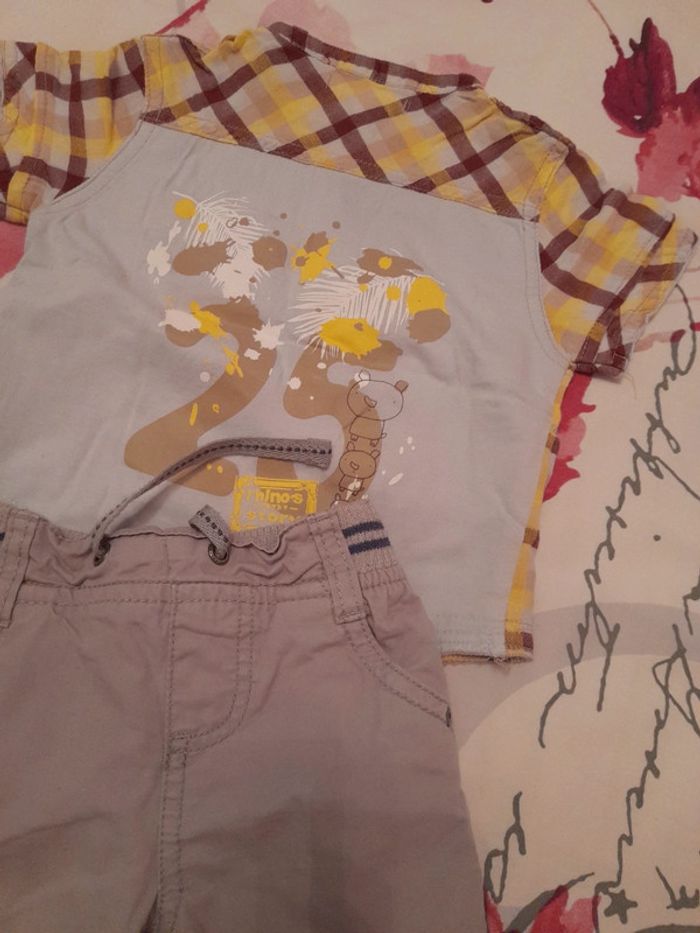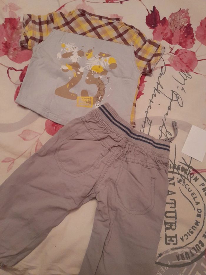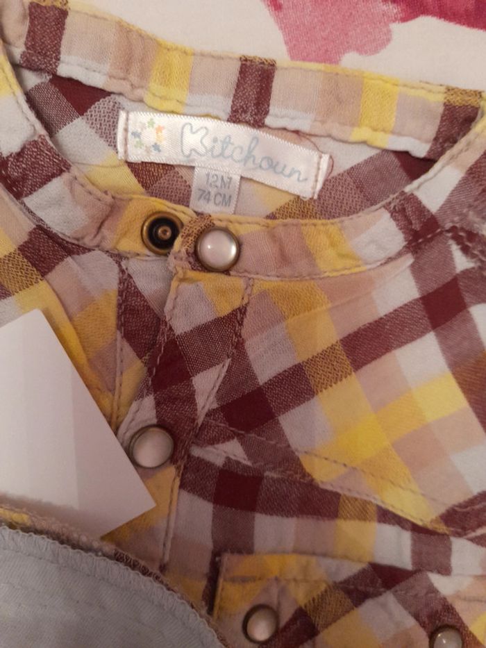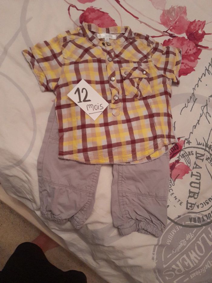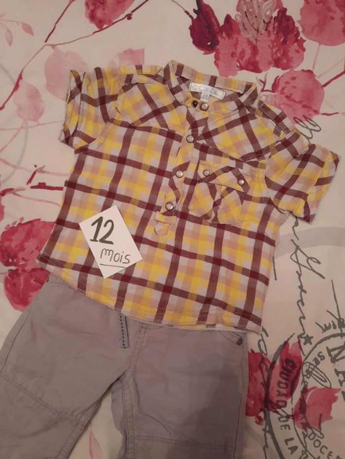 Ensemble 12 mois jamais porté Pantalon gris tape à l'œil Chemise kitchoun #12moisbabyestlé