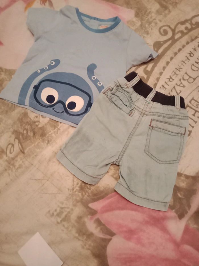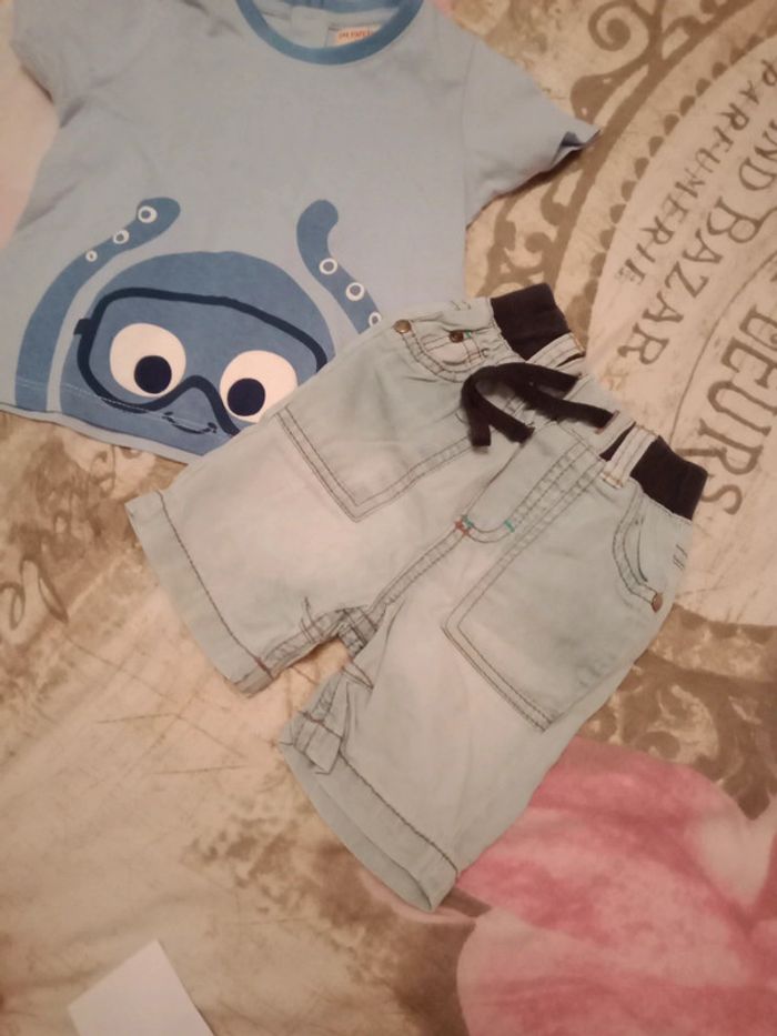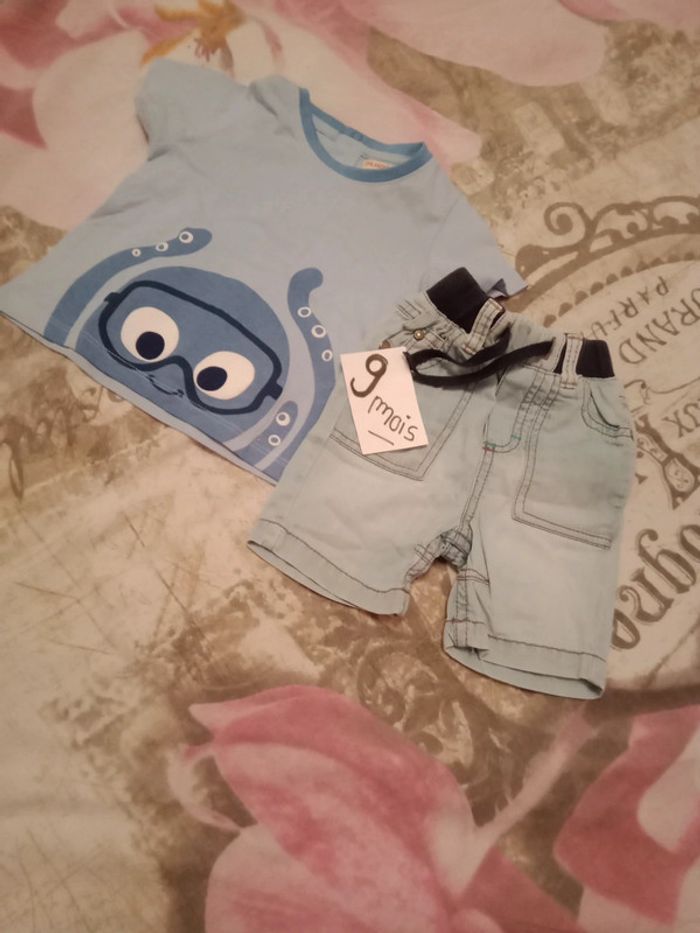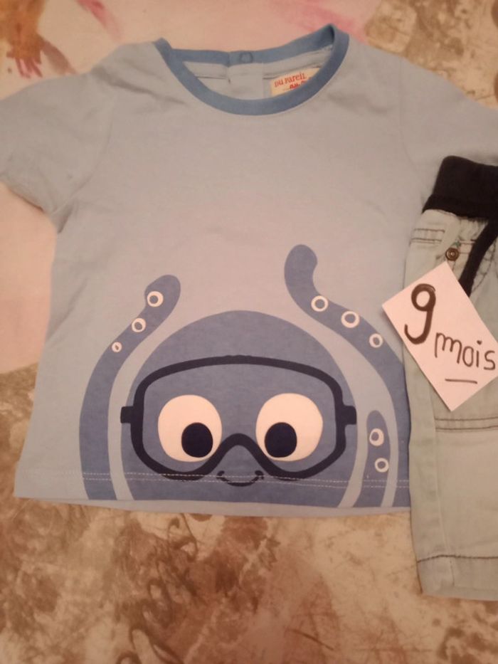 Tee shirt pieuvre Neuf jamais porté du pareil au même Short jean léger orchestra porté une fois (trace au dos normal) D'autres vêtements bébé 9 mois cliquez ici ↩️: #9moisbabyestlé