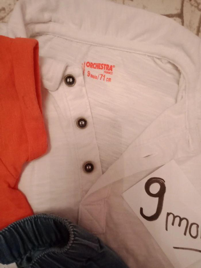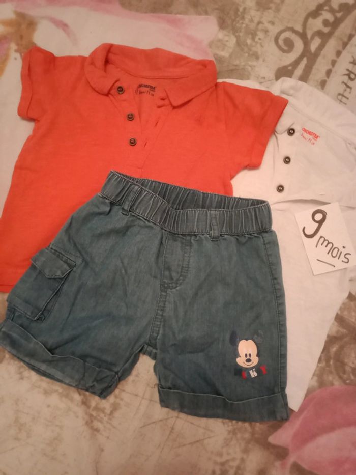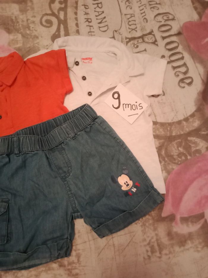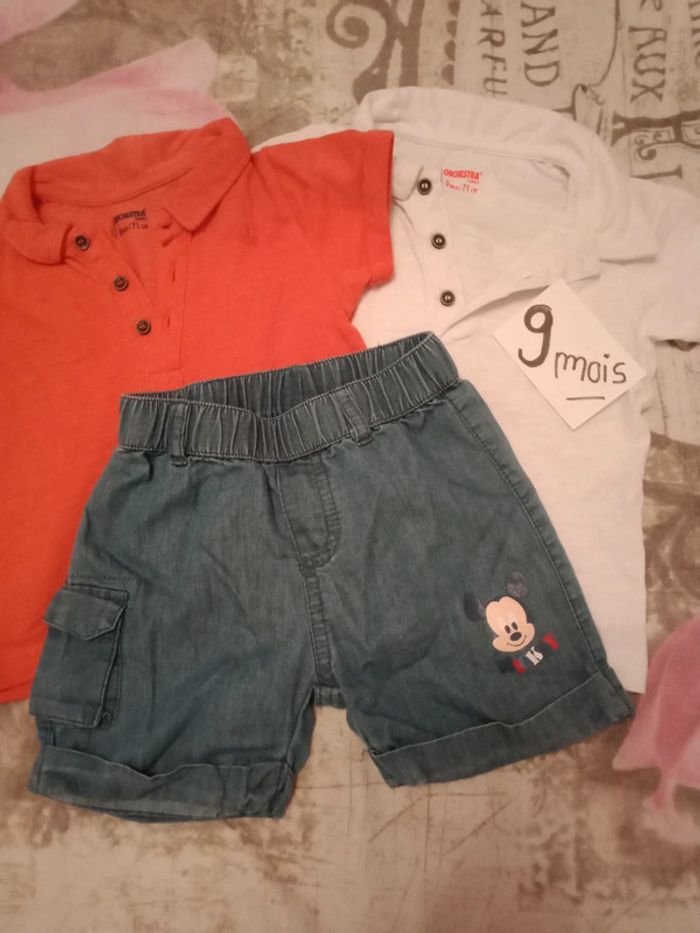 Ensemble 3 pièces 9 mois Deux polos manches courtes orchestra Un short jean léger Disney baby Ensemble neuf couleur magnifique D'autres vêtements bébé 9 mois cliquez ici ↩️: #9moisbabyestlé