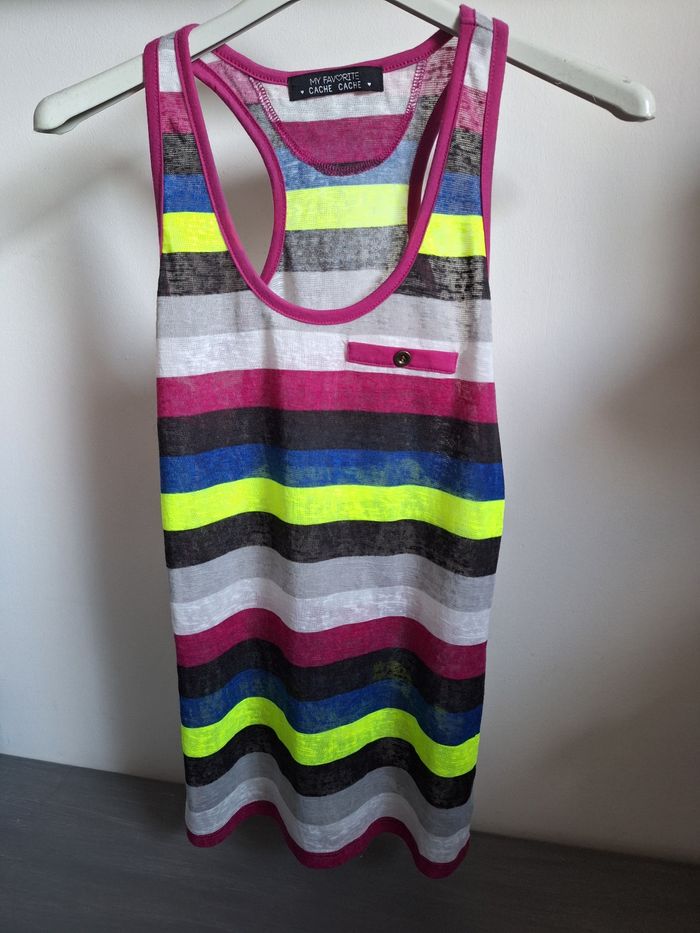 FEMME 36 / S N°1584 debardeur rayé Multicolore 100% polyester Taille 36 / s Neuf plus d étiquette 🏷 Cache cache 6,50€ #kelly_femmeT36