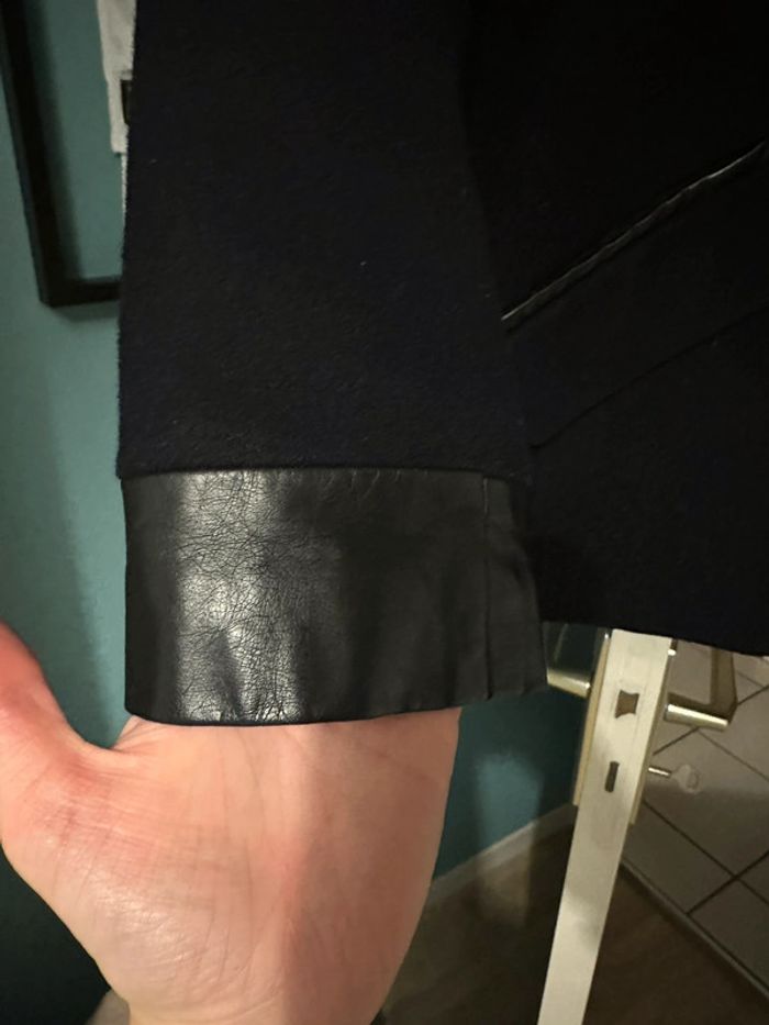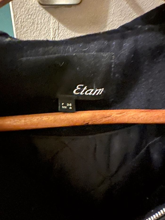 De marque etam Manteau d’hiver taille 34 Boue marine avec détail en simili cuir noir sur les manches Avec capuche et fausse fourrure autour