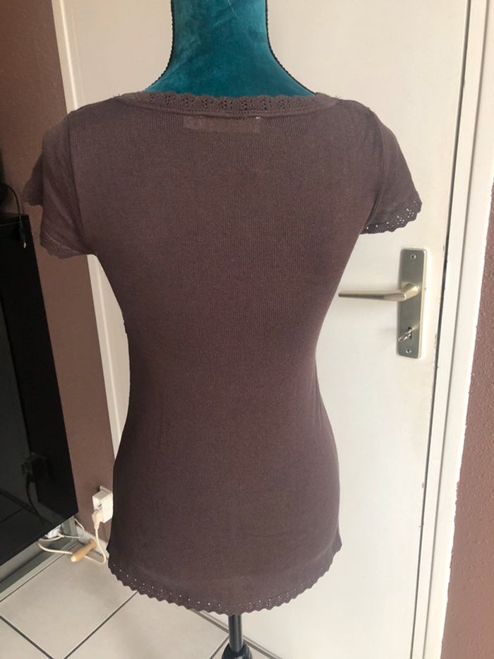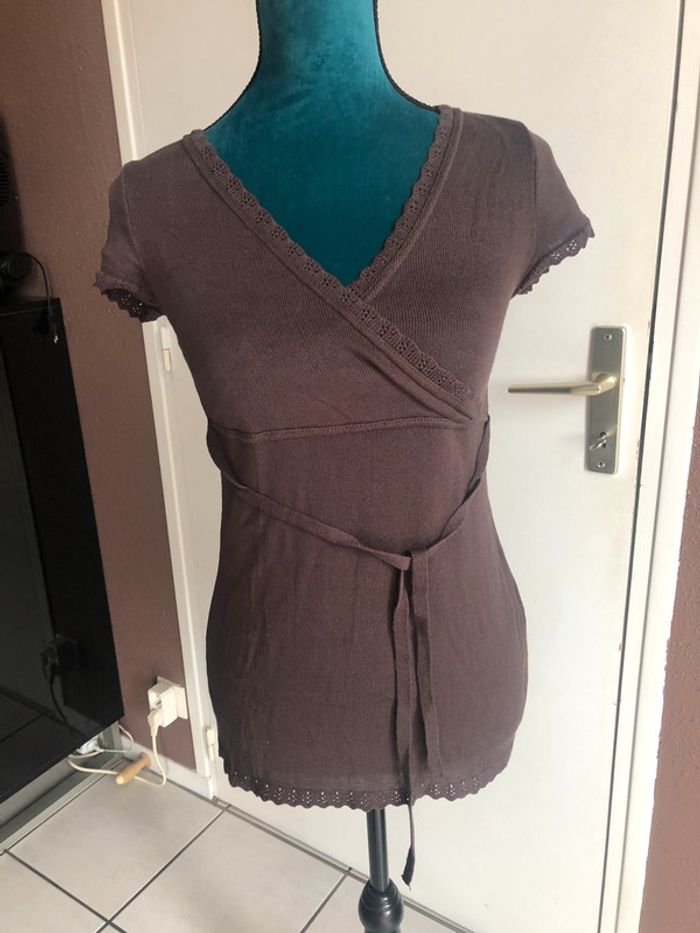 à vendre pull léger manches courtes de marque cache cache taille 1 porté une seule fois très jolie couleur prune