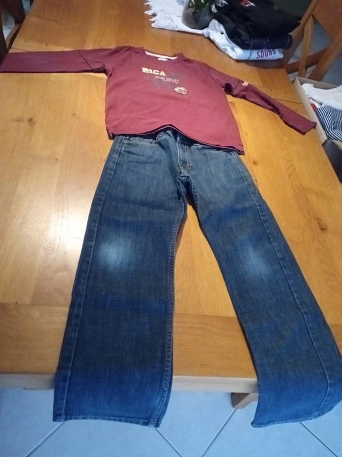 Lot 1 jeans et 1 t-shirt manches longues taille 10 ans en très bon état