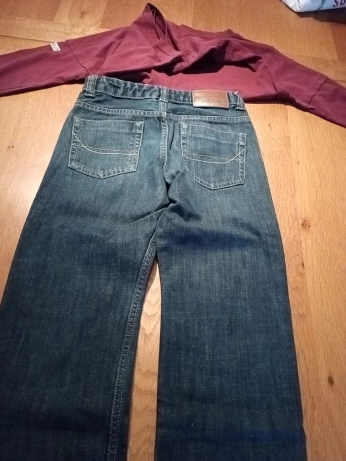 Lot 1 jeans et 1 t-shirt manches longues taille 10 ans en très bon état - photo numéro 3