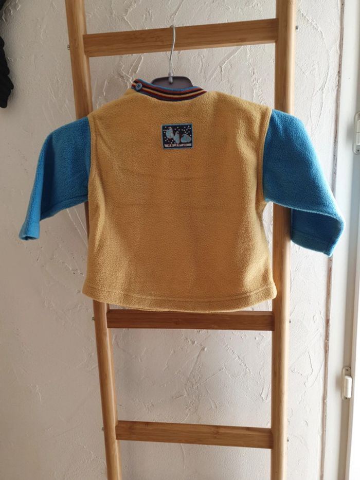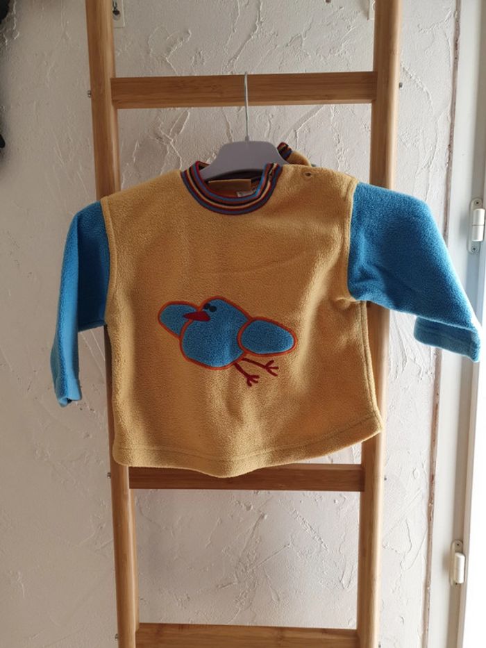 Sweat-shirt polaire jaune et bleu motif oiseau taille 18mois