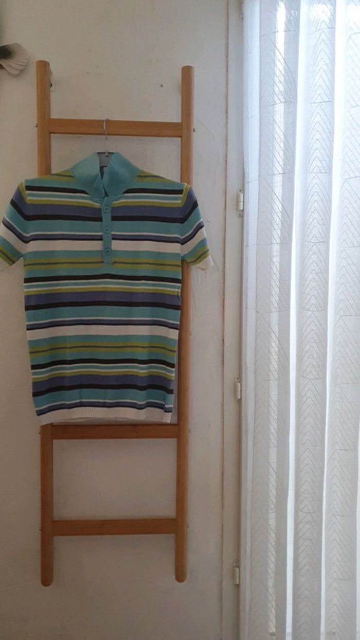 Pull fin à rayures bleu et vert