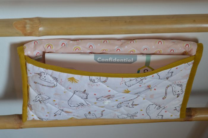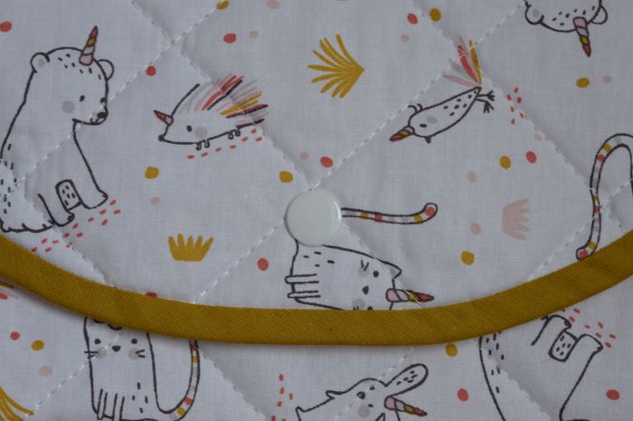 Pochette matelassée de la collection REVES ENCHANTES. Pochette en tissu matelassé, parfait pour carnet de santé ancien (bleu foncé) comme nouveau (blanc) et/ou pour y mettre une couche et quelques lingettes. Vous trouverez un accroche stylo à l'intérieur en velours, il se ferme par pression de la marque connue KAM. Dimensions de la pochette : 28x17cm Broderie possible sur le rabat, 6 euros en plus. Dans ce cas me contacter. Photos non contractuelles, marge possible +/- 5mm.