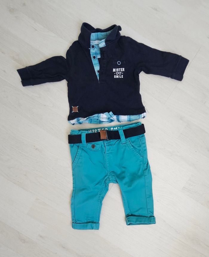 Ensemble polo 2 en 1 + pantalon bébé 3 mois très bon état de laqué gémo