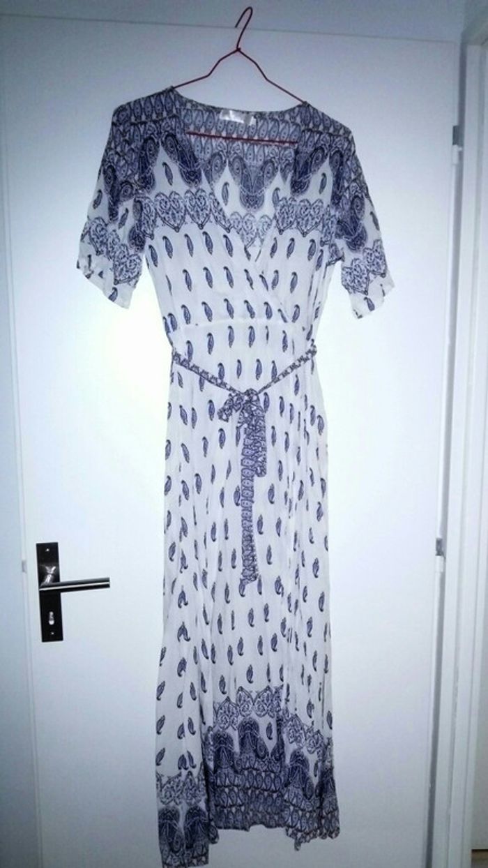 Robe longue, fendue sur le côté. Ceinture à nouer,