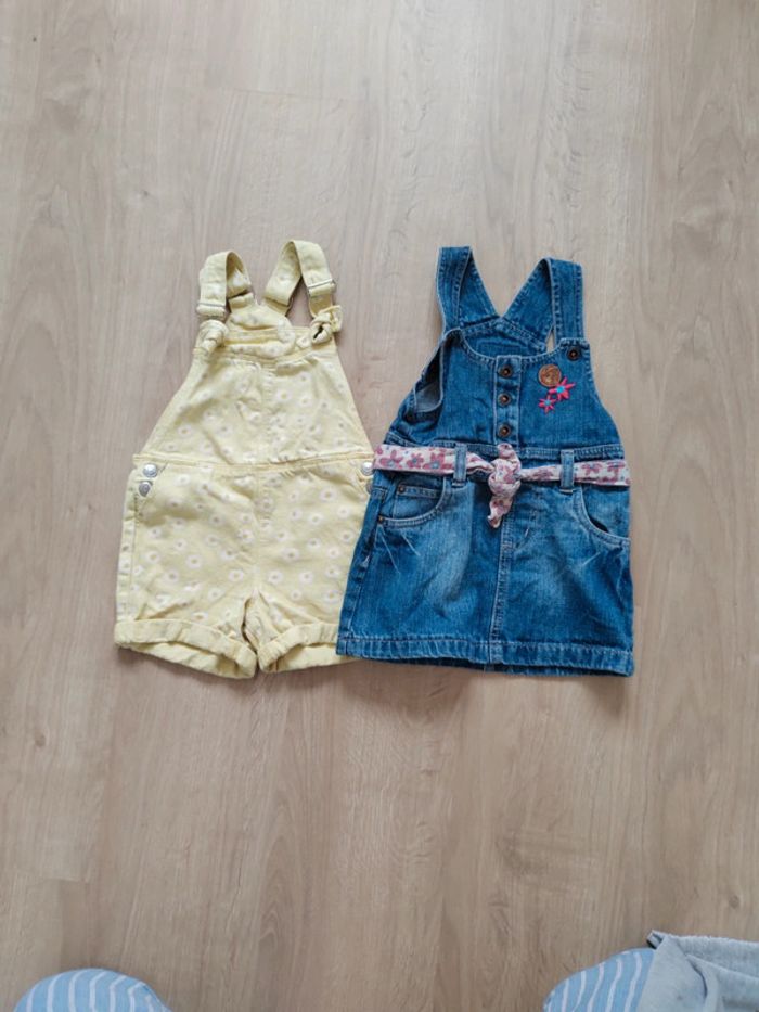 Lot comprenant -une robe en jean avec ceinture en tissu Bretelles réglables Taille 2ans mais taille grand -une salopette short en jean Bretelles réglables Taille 3ans Peu portée Les 2 articles malgré une taille différente, taille pareil Ma fille les a portées à la même période