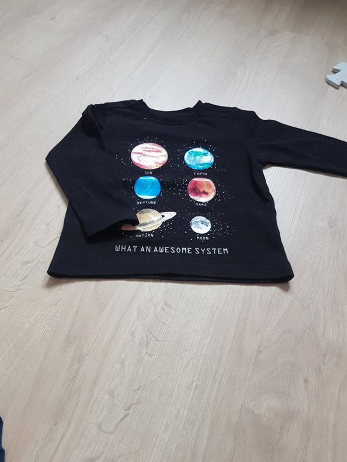 Lot de 4 tee shirts manches longues mi saison -2 identiques "T Rex" -1 planètes -1 "Movie Cars"