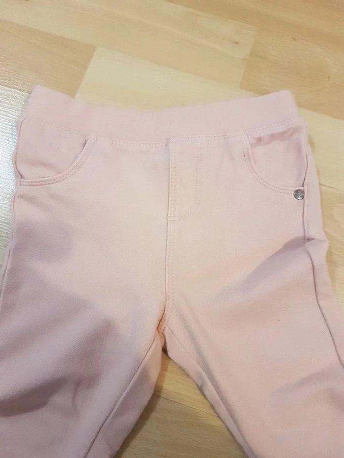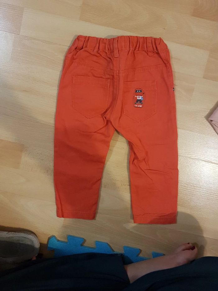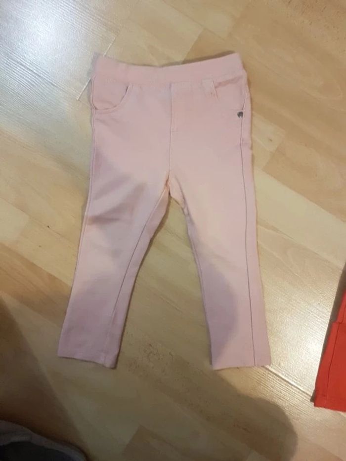 Lot de 2 pantalons 18 mois - 1 rouge effet jean taille ajustable (apparaît plutôt orange sur la photo à cause de l'éclairage) - 1 rose (jegging)