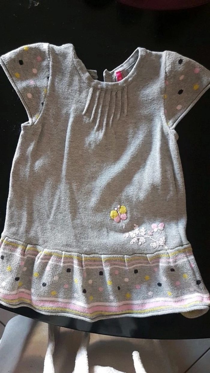 Lot de 2 robes : - 1 rouge à bretelles en velours avec ouverture devant par boutons pressions marque Z (rend plus claire sur la photo mais elle est bien bordeaux) - 1 grise avec des pois mi saison car un peu "épaisse" marque orchestra