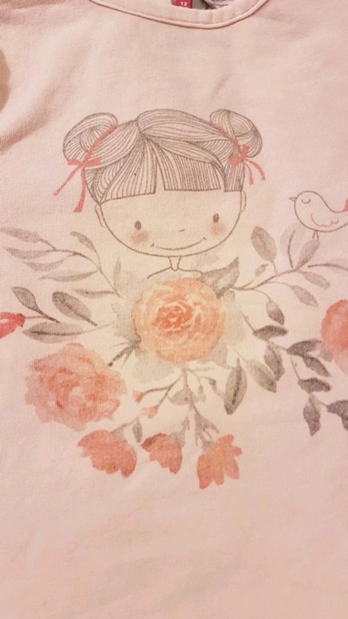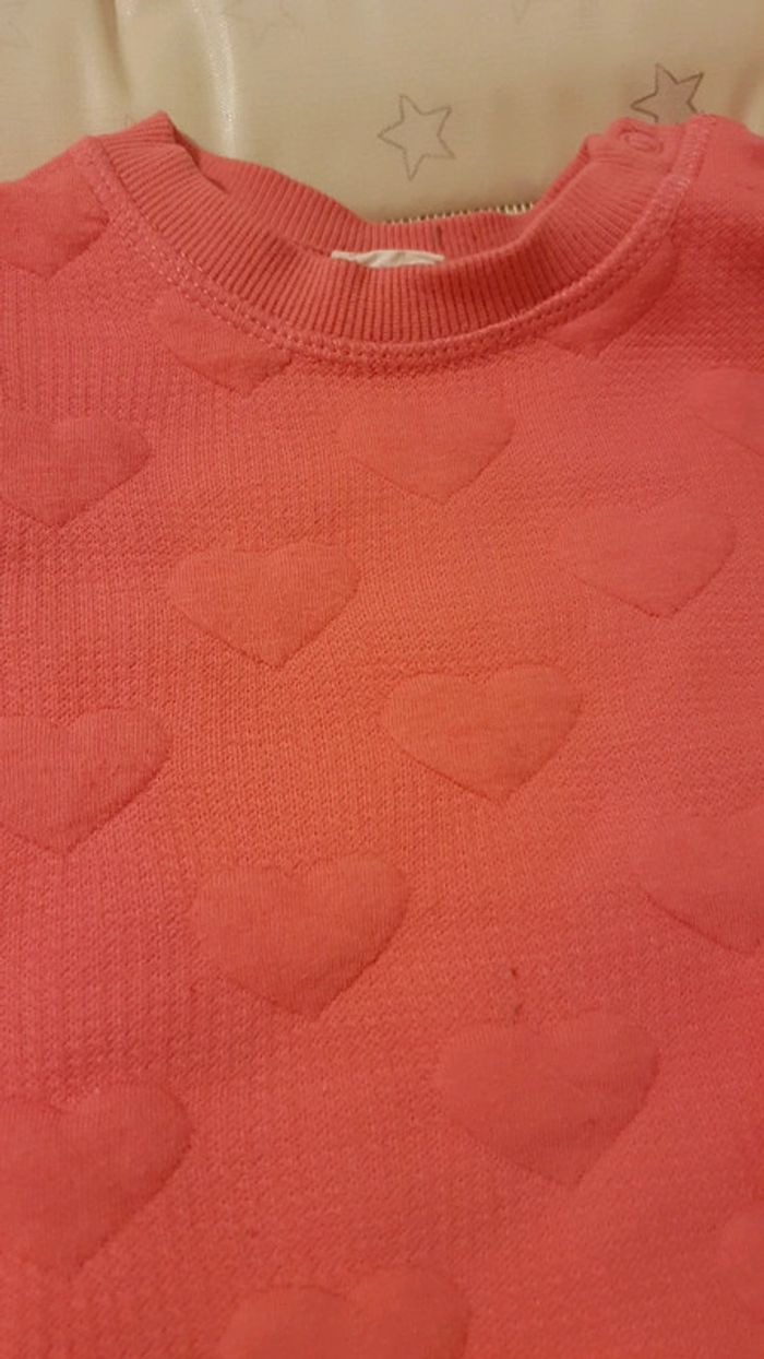 Lot de 2 Pulls 12 mois : -1 "sweet" manches longues rose clair Boutons pression à l'arrière -1 pull rose fushia avec coeurs