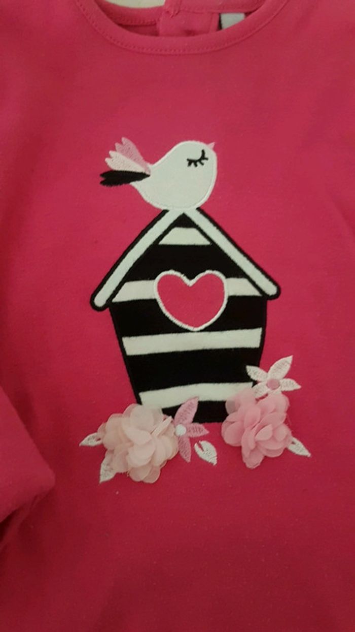 Ensemble fille 12 mois comprenant : - un tee shirt plutôt épais manches longues Fermeure à l'arrière Fleurs en "3D" -un legging