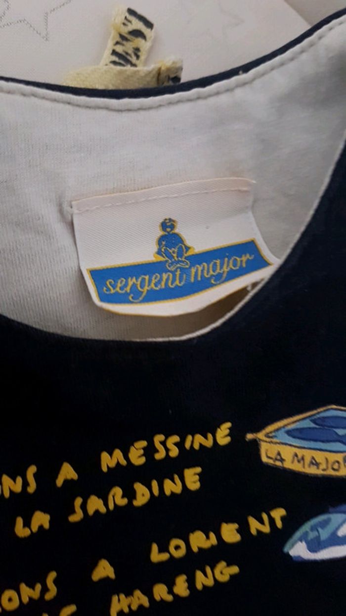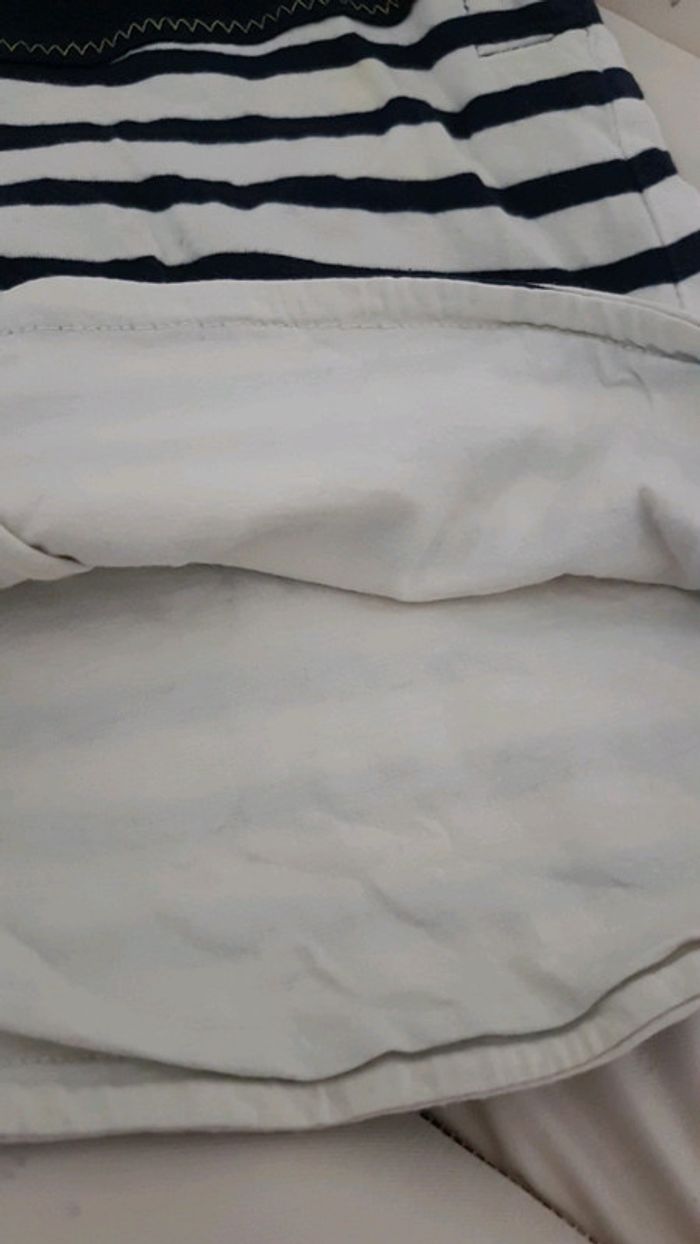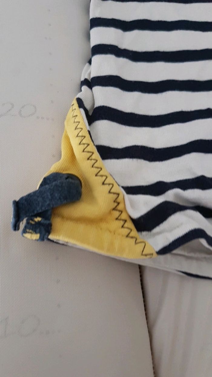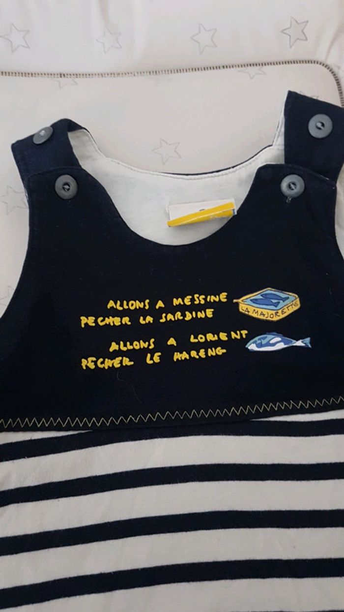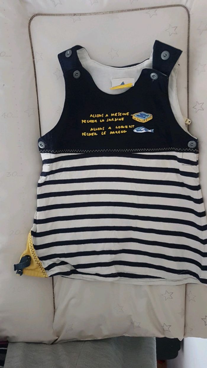 Robe 12 mois doublée style marinière sans manches Deux tailles de fermeture aux épaules Petite tâche discrète sur le devant (voir dernière photo)