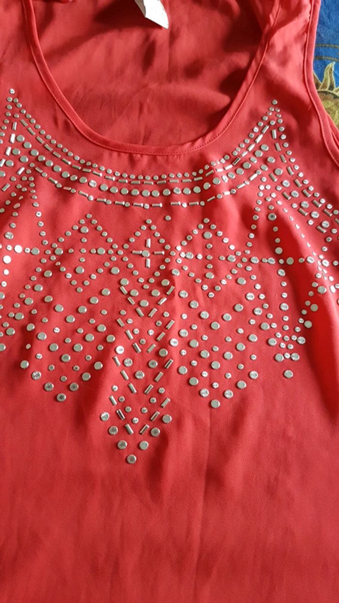 Top rose mi long avec décors sur la poitrine Taille S mais correspond à un M (ma taille)