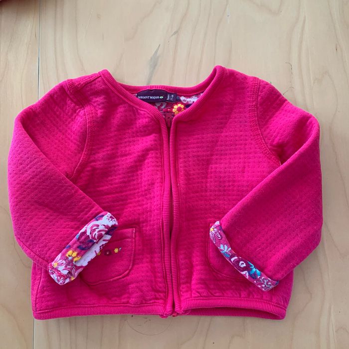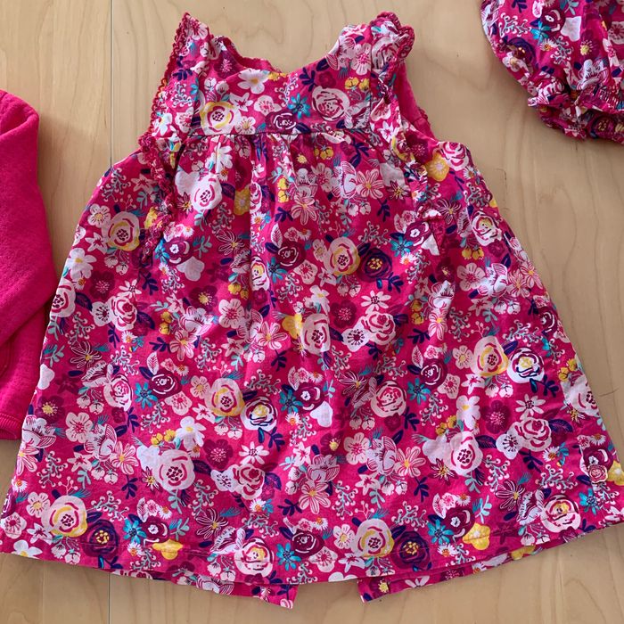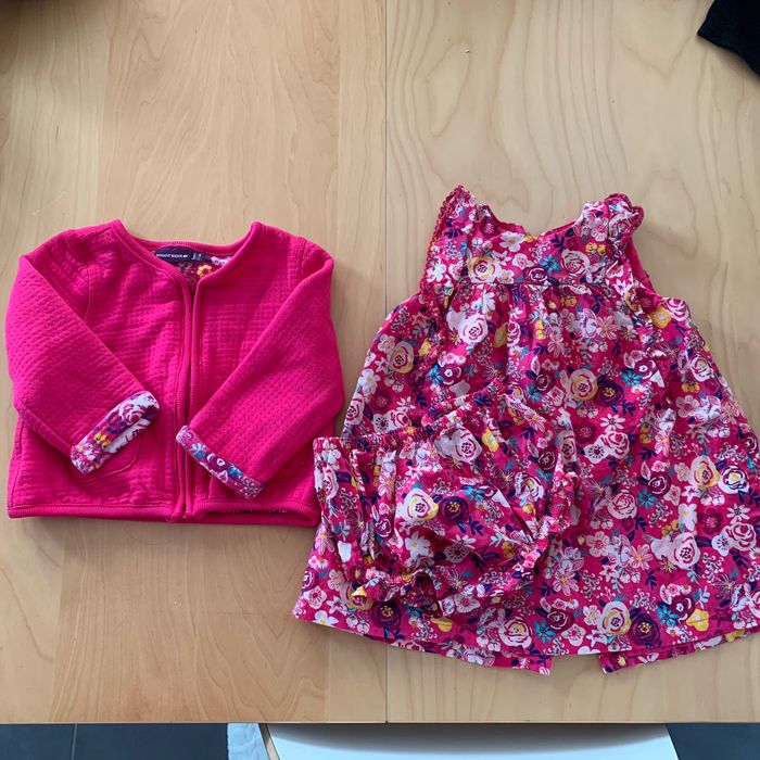 Magnifique ensemble été comprenant robe + bloomer + gilet. Taille 9 mois Marque : sergent major Excellent état Prix: 15€