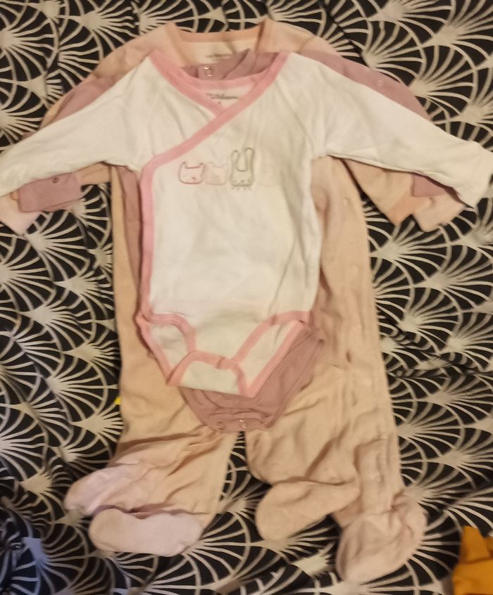 Un pyjama marque tape a l'oeil,un vert Beaudet,body un kitchoun,un sergent major pymana 2€ pièce ,body 1€ pièce