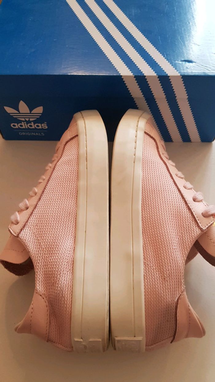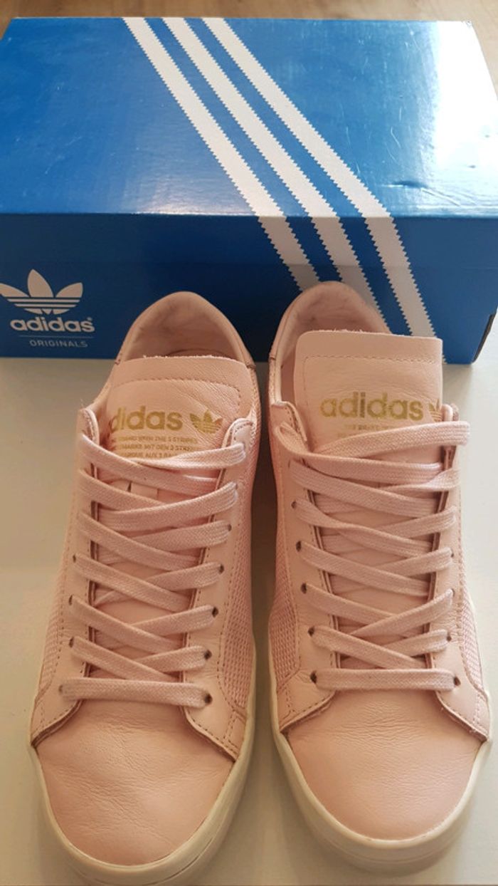 Portées 3 fois, quasi neuves. Adidas Originals, Courtvantage W, rose avec écriture dorée. Vendues dans leur boite originale.
