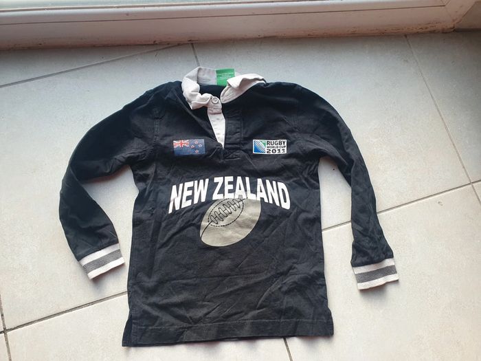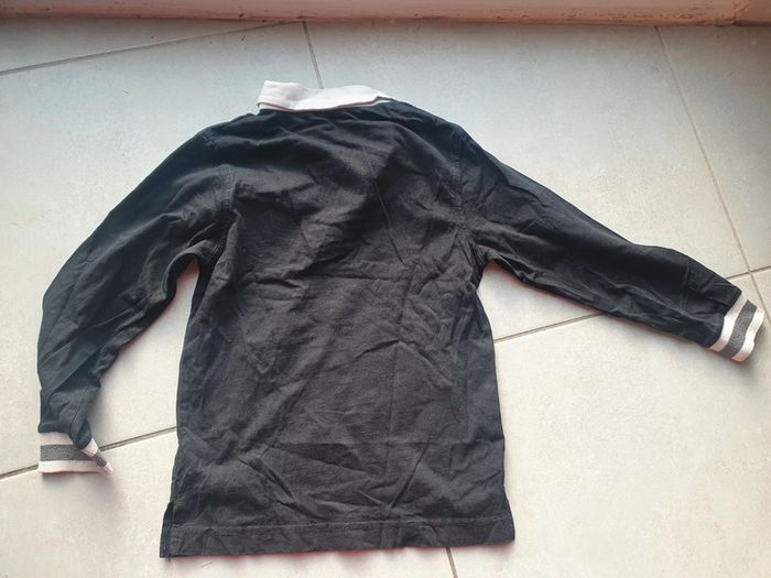 Polo de rugby enfant en 8 ans. Je passerai un coup de rouleau pour enlever les petites peluches. Il manque 2 boutons au niveau du col. #Haut #tshirt #rugby #noir #rugbyoriginals #enfant