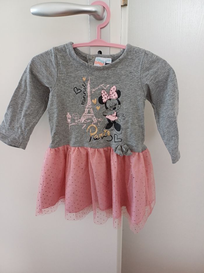 Robe grise et rose Disney Minnie. Dentelle sur le bas de la robe. Très bien pour les saisons printemps été.
