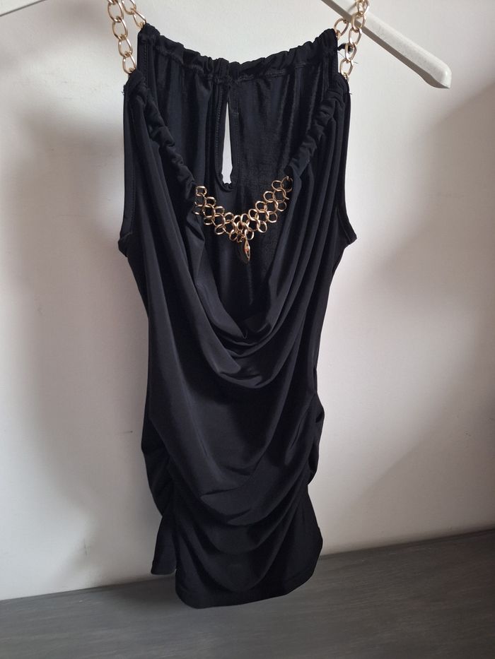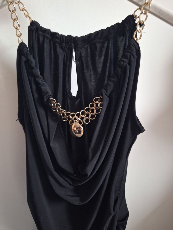 FEMME 38 /M N°1617 debardeur noir Chaîne or , licra Longueur 65 cm Resserré cote Taille 38 / m 5,50€ #kelly_femmeT38