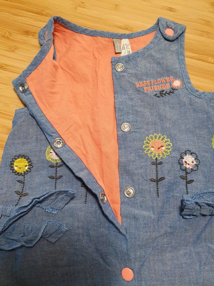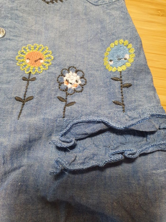 Brodé fleurs Aperture pour changer la couche Fermeture par pressions Doublé coton Bleu indigo Style jean denim chambray F_03M_SH_1