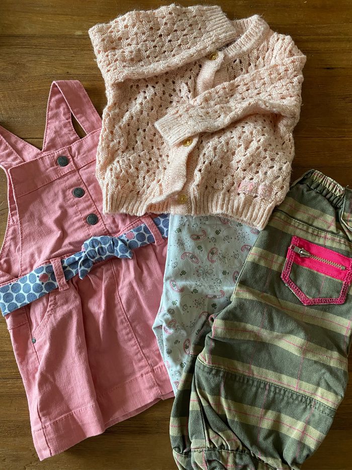 🌟 veste noukie 🌟pyjama velours mes petits cailloux 🌟 4 bodies lulu castagnette et lupilu 🌟 tish ML noukie et gemo 🌟 robe obaibi 🌟 gilet la compagnie des petits rose pailleté 🌟 pantalon tape à l œil 🌟 pantalon okaidi kaki et rose
