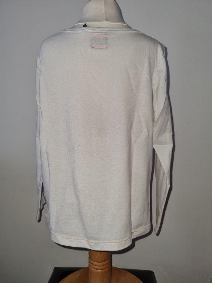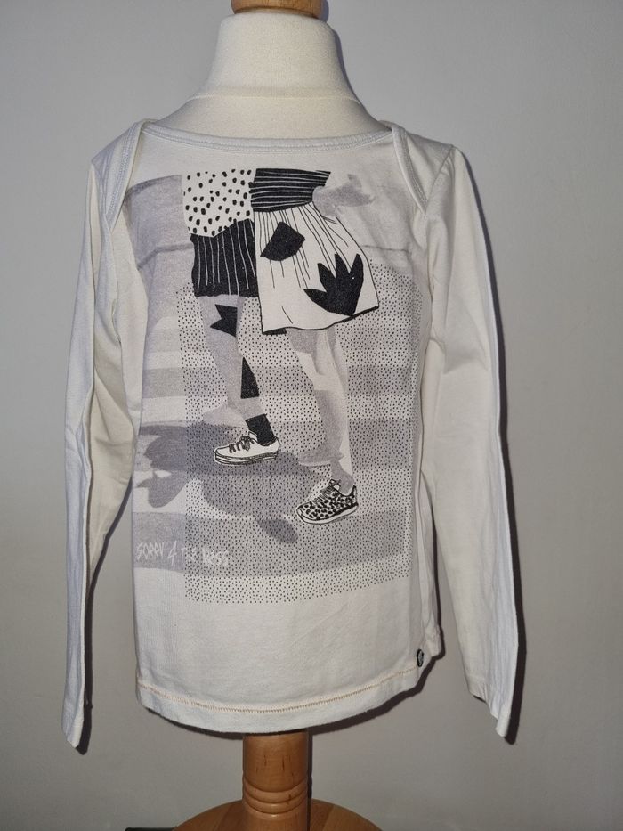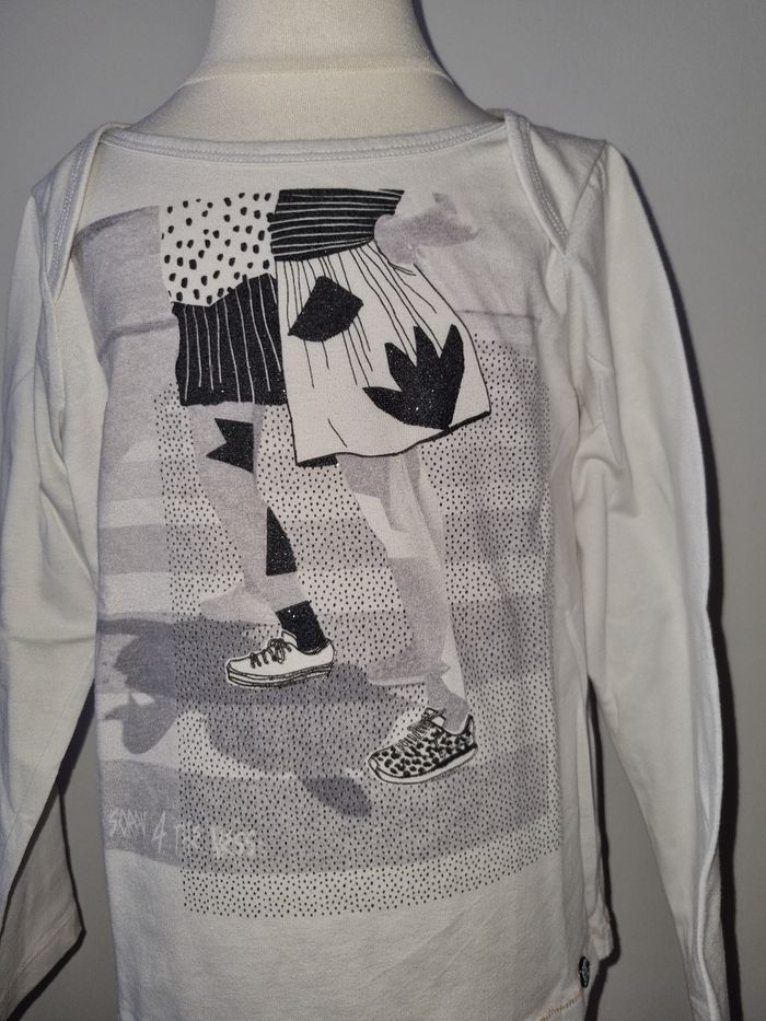 T-shirt manches longues blanc à motifs gris, en bon état. Porté à plusieurs reprises, blanc moins eclatant, petite tache sur la manche Marque IKKS, taille 5 ans. #5anssevy57