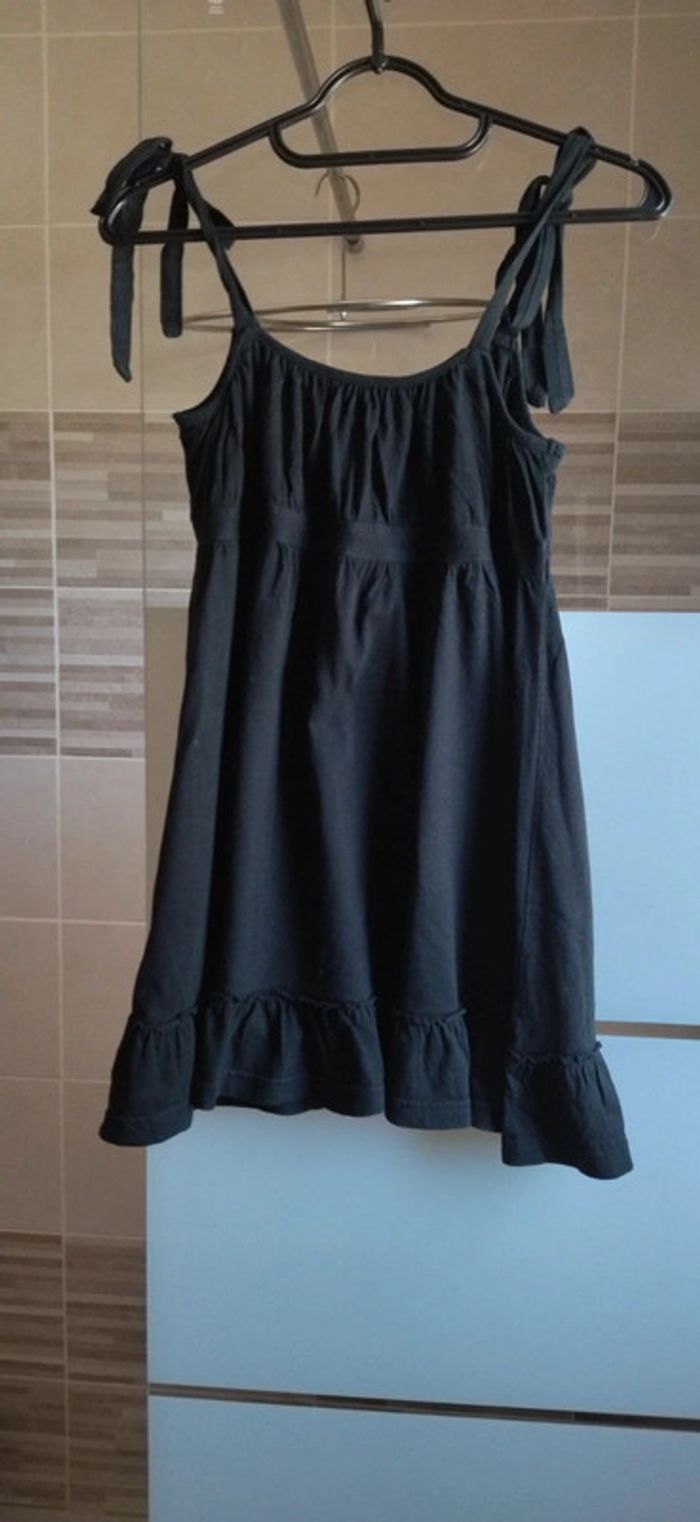 Robe noire à bretelles taille M Longueur 60 cm+ bretelles réglables Largeur sous aisselle 37 cm Volant au bas de la robe 100% coton