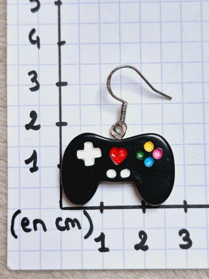 Superbe paire de boucles d'oreilles manette de jeu noire - photo numéro 3