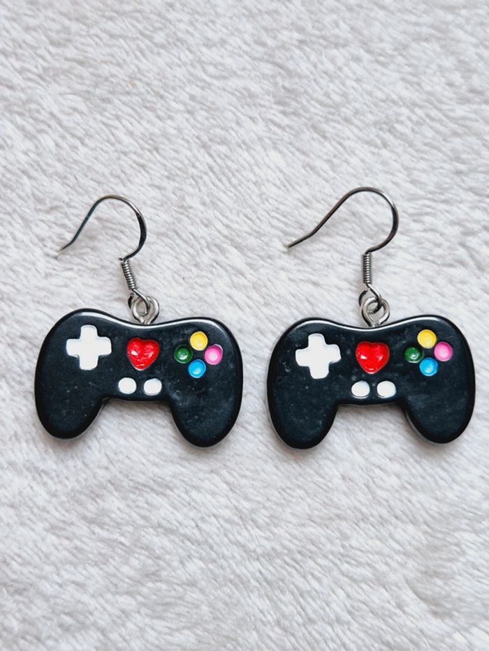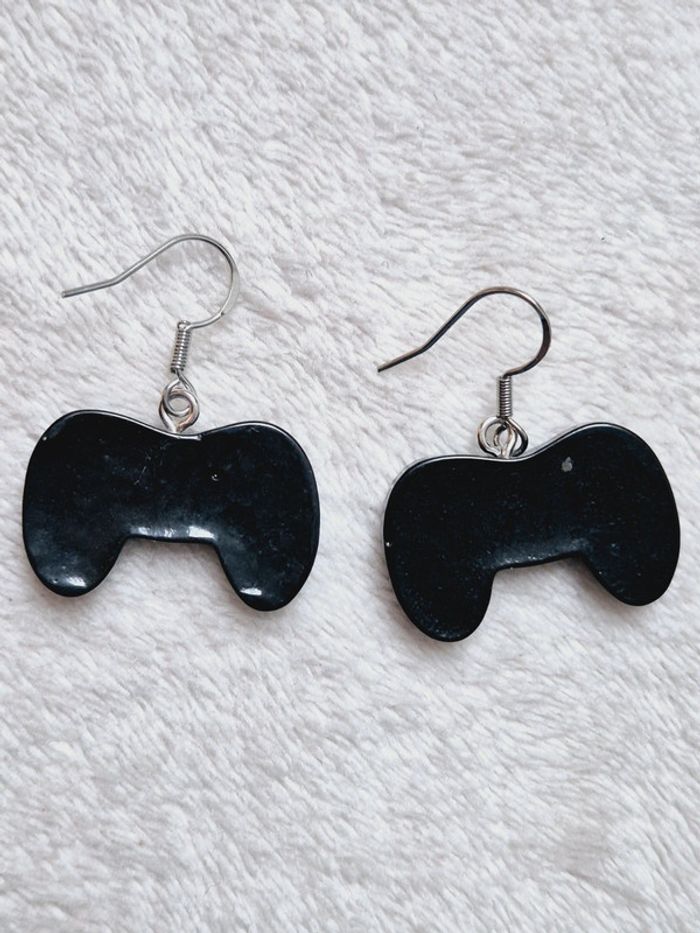Superbe paire de boucles d'oreilles manette de jeu noire - photo numéro 1