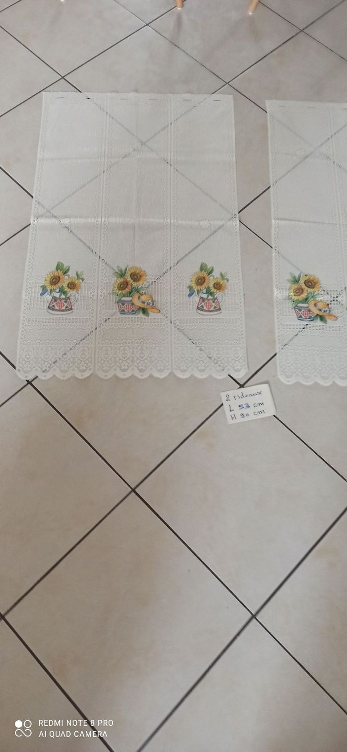 Vends 2 rideaux motifs tournesol l 53 cm h 90 cm